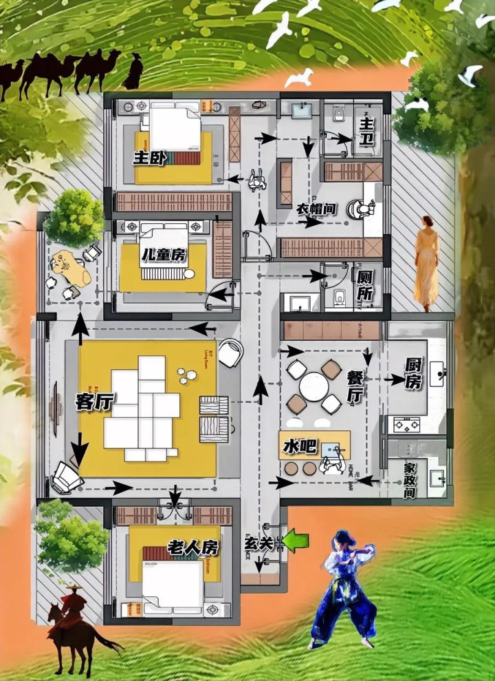 我就说布局,是三口人生活上审美的巅峰,围合式布局看的丑,移动动电视适合当今主流生活,不做背景墙,留娃儿布局留空间,双门怼床尾,放在邻居家里,违反人类的基本法!